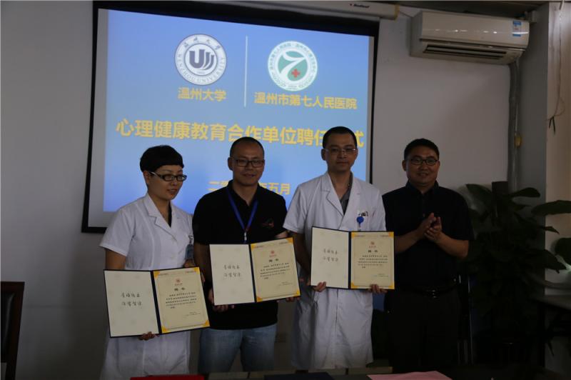 ? 溫州大學(xué)聘請(qǐng)了溫州市第七人民醫(yī)院院長(zhǎng)林小東、副院長(zhǎng)林崇光、副院長(zhǎng)張偉為溫州大學(xué)心理健康教育中心工作顧問(wèn),聘請(qǐng)溫州市第七人民醫(yī)院醫(yī)務(wù)科陳策科長(zhǎng)、洪滬津醫(yī)師、陳浩然醫(yī)師為溫大心理健康教育工作校外專(zhuān)家。根據(jù)溫大的需求,市七醫(yī)將派遣專(zhuān)業(yè)醫(yī)生提供精神衛(wèi)生工作指導(dǎo),開(kāi)設(shè)專(zhuān)題講座;為有心理危機(jī)或疑似精神疾病的學(xué)生提供專(zhuān)業(yè)幫助及建議;為溫大在讀并在市七醫(yī)治療登記過(guò)的各類(lèi)精神障礙的學(xué)生建檔,提供動(dòng)態(tài)監(jiān)護(hù),保持與校方及家屬的信息溝通;接受溫大老師心理學(xué)進(jìn)修學(xué)習(xí)等等服務(wù)。