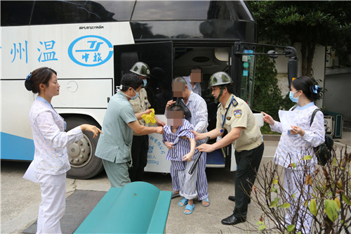5月24日,龍灣港務(wù)院區(qū)二十二病區(qū)搬遷至騰空的西山院區(qū),100多名從龍灣優(yōu)撫院區(qū)搬遷的患者,于當(dāng)天9時(shí)許達(dá)到西山院區(qū)住院部樓下,早已騰空就緒的病房迎來了一批“新客人”。當(dāng)運(yùn)送患者的車門打開的那一瞬間,特勤人員、安保人員、醫(yī)護(hù)人員,早已準(zhǔn)備就緒,迎接患者們的到來。