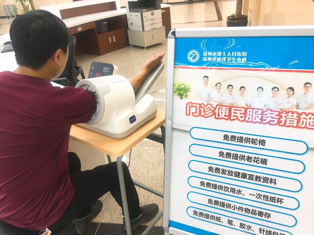 ?大廳有方便病人等待班車的長椅,服務(wù)中心還提供各種便民服務(wù)措施,例如提供輪椅、一次性水杯、測量血壓、提供證件復(fù)印、手機(jī)充電等,體現(xiàn)了我們“用心呵護(hù),用心關(guān)懷”的服務(wù)理念。