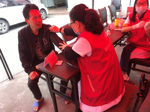 10.27日上午八點(diǎn),天灰蒙蒙的,一副隨時要下雨的樣子,但我院康復(fù)科巾幗文明崗和后勤黨支部的志愿者們只管風(fēng)雨兼程,管它是晴是雨,志愿服務(wù)的初心依舊,大家穿上白大褂和紅馬甲,搭桌子,搬椅子,擺好儀器藥品,布置一陣場地?;I備已久的義診活動在潘橋華亭村委會如期舉行。